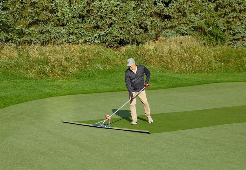 This easy to open and close dew brush makes clearing dew off the turf simple. Folds out to 10 Feet wide.